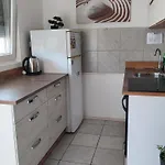 Een ingerichte keuken wordt verhuurd met een koelkast en een oven, zodat u een snel hapje kunt nemen.
